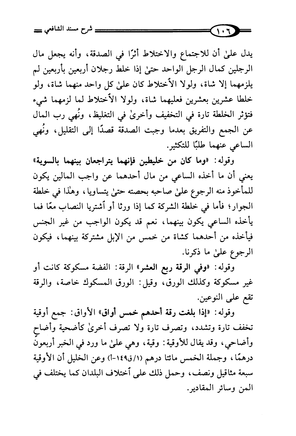 وقوله: "وما كان من خليطين فإنهما يتراجعان بينهما بالسوية" يعني أن ما أخذه الساعي من مال أحدهما عن واجب المالين يكون للمأخوذ منه الرجوع على صاحبه بحصته حتى يتساويا، وهذا في خلطة الجوار؛ فأما في خلطة الشركة كما إذا ورثا أو اشتريا النصاب معًا فما يأخذه الساعي يكون بينهما، نعم قد يكون الواجب من غير الجنس فيأخذه من أحدهما كشاة من خمس من الإبل مشتركة بينهما، فيكون الرجوع على ما ذكرنا.