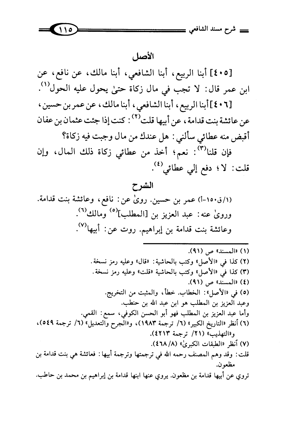 [406] أبنا الربيع، أبنا الشافعي، أبنا مالك، عن عمر بن حسين، عن عائشة بنت قدامة، عن أبيها قلت (¬2): كنت إذا جئت عثمان بن عفان أقبض منه عطائي سألني: هل عندك من مال وجبت فيه زكاة؟