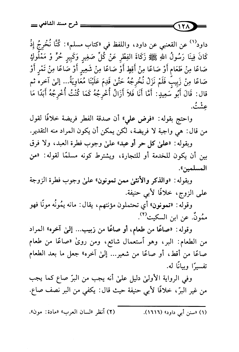 وقوله: "صاعًا من طعام، أو صاعًا من زبيب ... إلى آخره" المراد من الطعام: البر، وهو استعمال شائع، ومن روى "صاعًا من طعام صاعًا من أقط، أو صاعًا من شعير ... إلى آخره" جعل ما بعد الطعام تفسيرًا وبيانًا له.