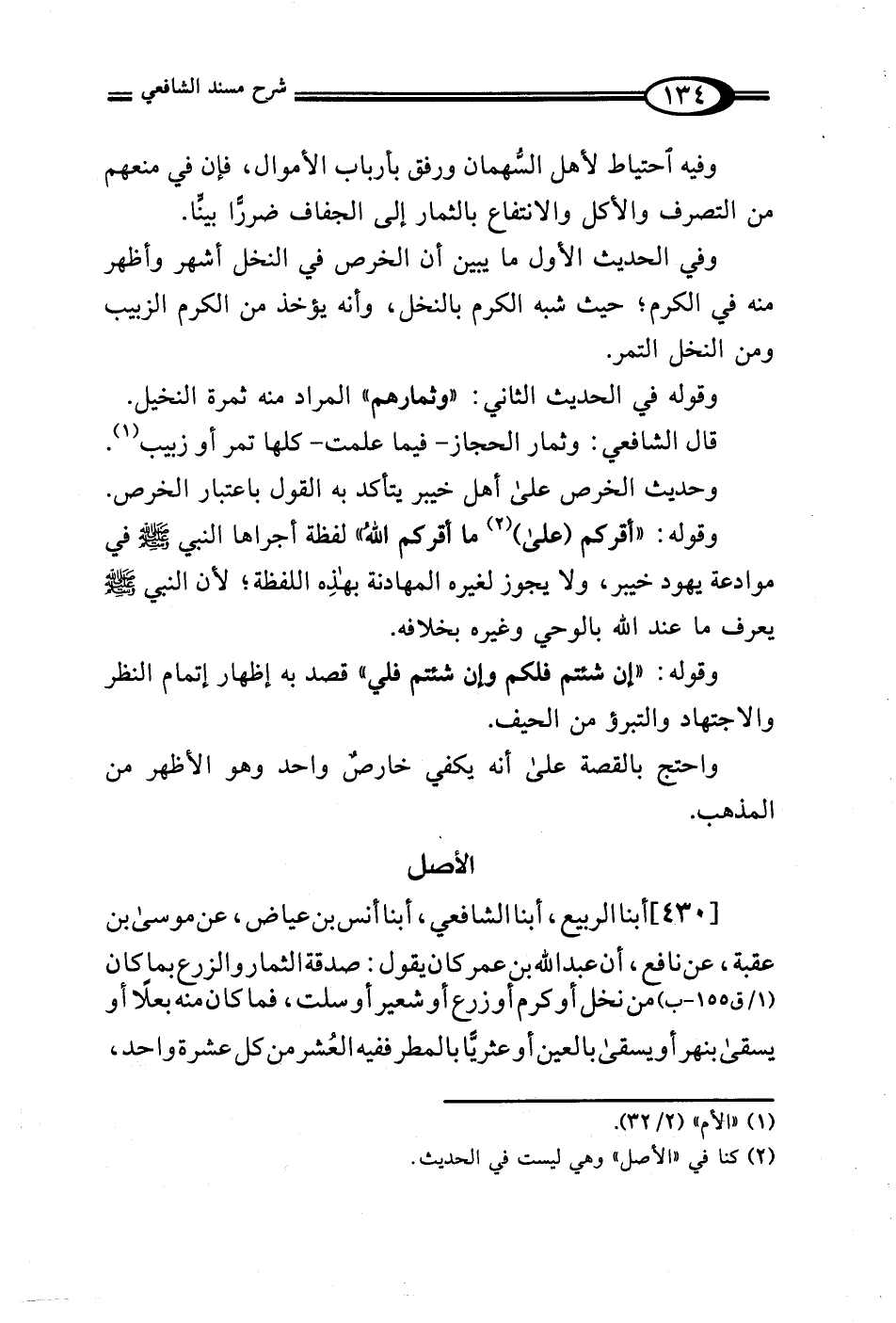 [430] أبنا الربيع، أبنا الشافعي، أبنا أنس بن عياض، عن موسى بن عقبة، عن نافع، أن عبد الله بن عمر كان يقول: صدقة الثمار والزرع بما كان من نخل أو كرم أو زرع أو شعير أو سلت، فما كان منه بعلًا أو يسقى بنهر أو يسقى بالعين أو عثريًّا بالمطر ففيه العُشر من كل عشرة واحد،
