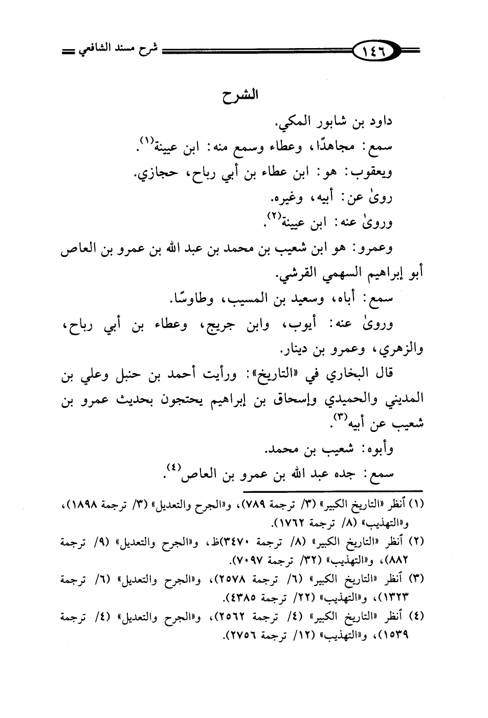 قال البخاريّ في "التاريخ": ورأيت أحمد بن حنبل وعلي بن المديني والحميدي وإسحاق بن إبراهيم يحتجون بحديث عمرو بن شعيب عن أبيه (¬3).