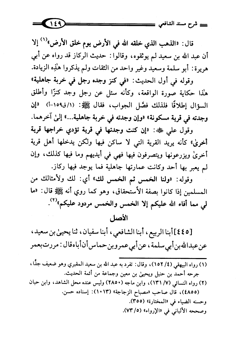 [445] أبنا الربيع، أبنا الشافعي، أبنا سفيان، ثنا يحيى بن سعيد، عن عبد الله بن أبي سلمة، عن أبي عمرو بن حماس أن أباه قال: مررت بعمر