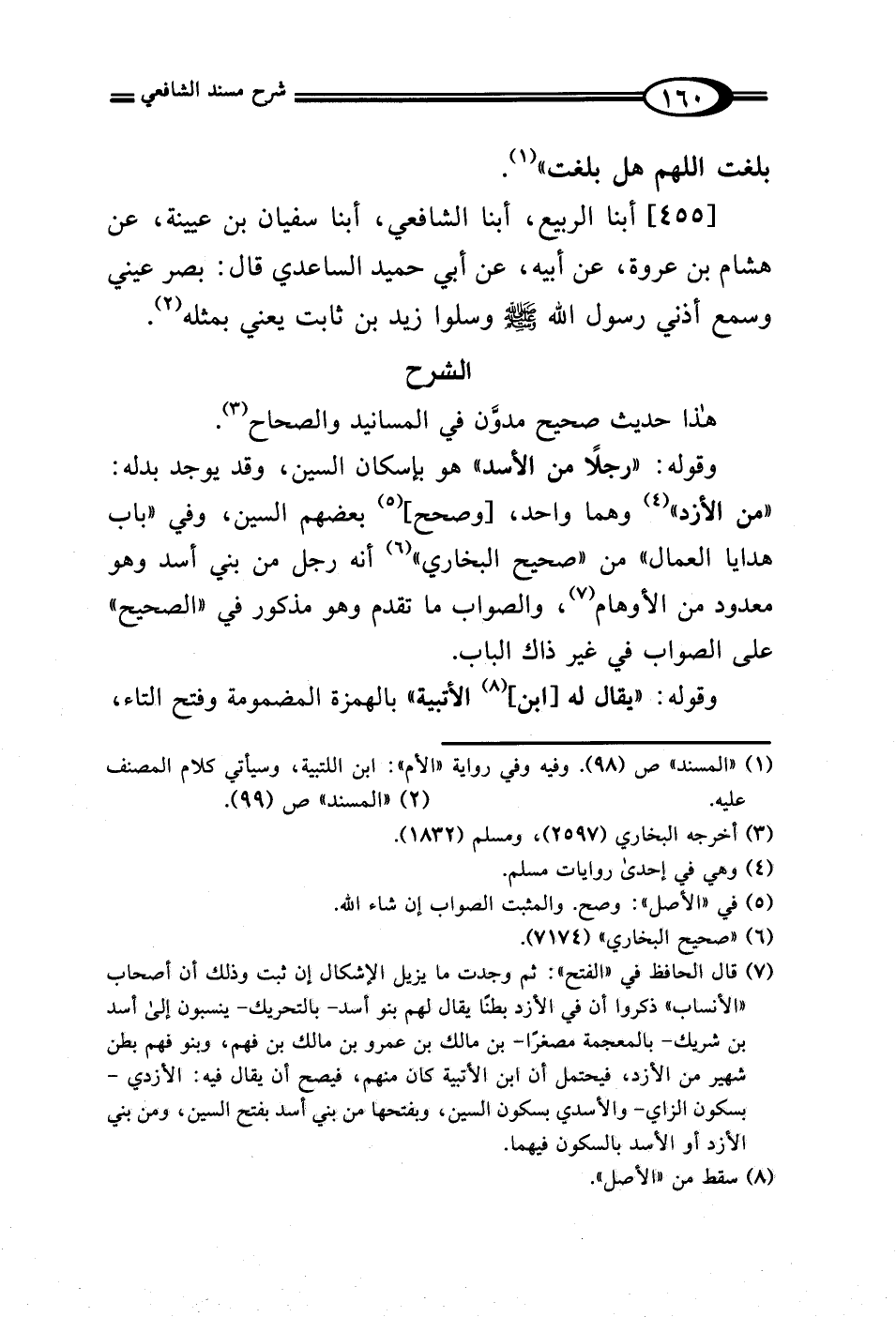 [455] أبنا الربيع، أبنا الشافعي، أبنا سفيان بن عيينة، عن هشام بن عروة، عن أبيه، عن أبي حميد الساعدي قال: بصر عيني وسمع أذني رسول الله - صلى الله عليه وسلم - وسلوا زيد بن ثابت يعني بمثله (¬2).