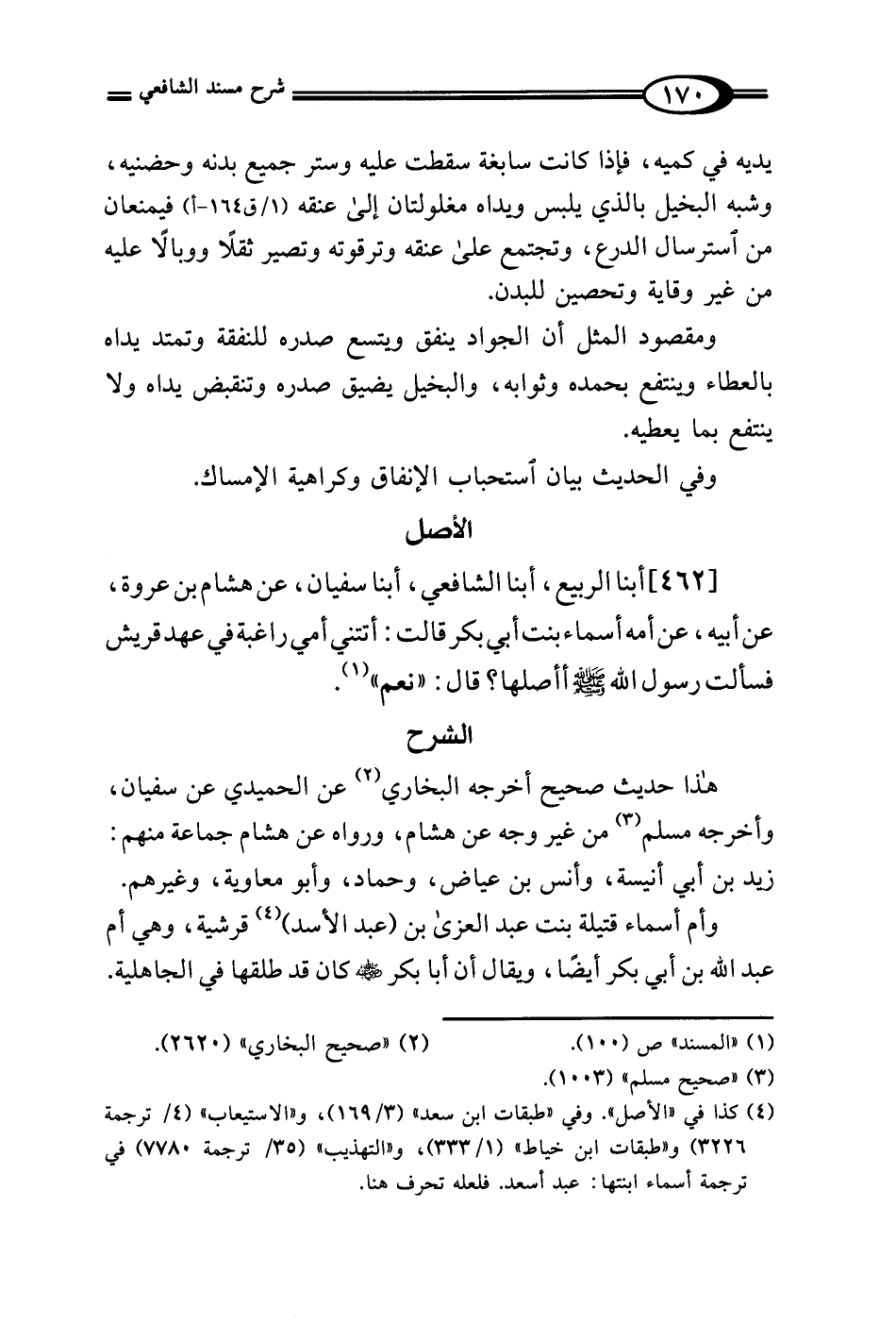 [462] أبنا الربيع، أبنا الشافعي، أبنا سفيان، عن هشام بن عروة، عن أبيه، عن أمه أسماء بنت أبي بكر قالت: أتتني أمي راغبة في عهد قريش فسألت رسول الله - صلى الله عليه وسلم - أأصلها؟ قال: "نعم" (¬1).