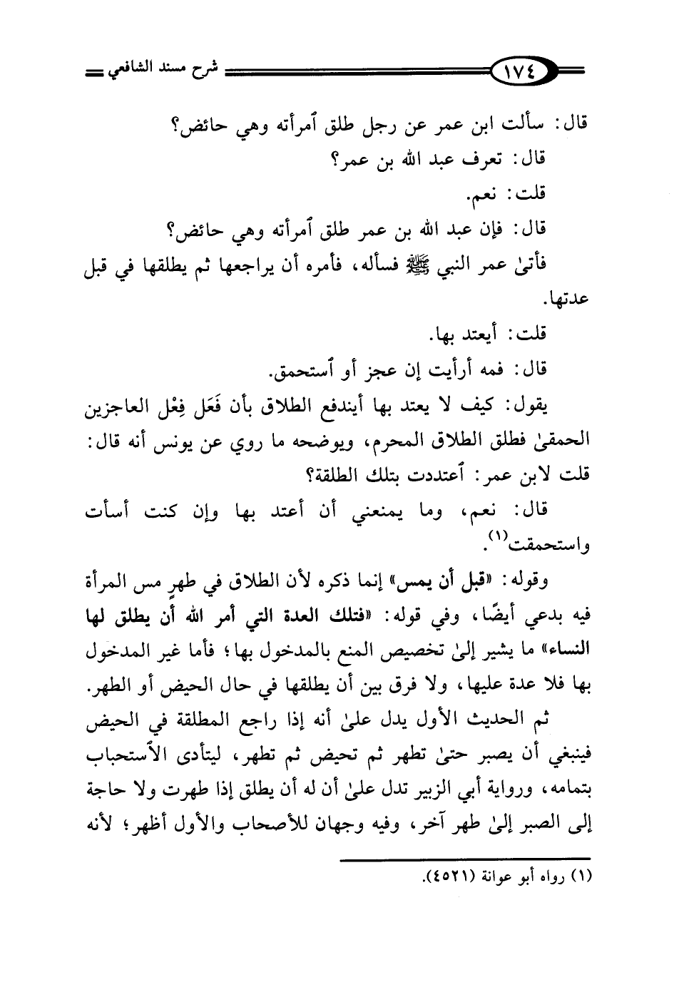 قال: فإن عبد الله بن عمر طلق امرأته وهي حائض؟