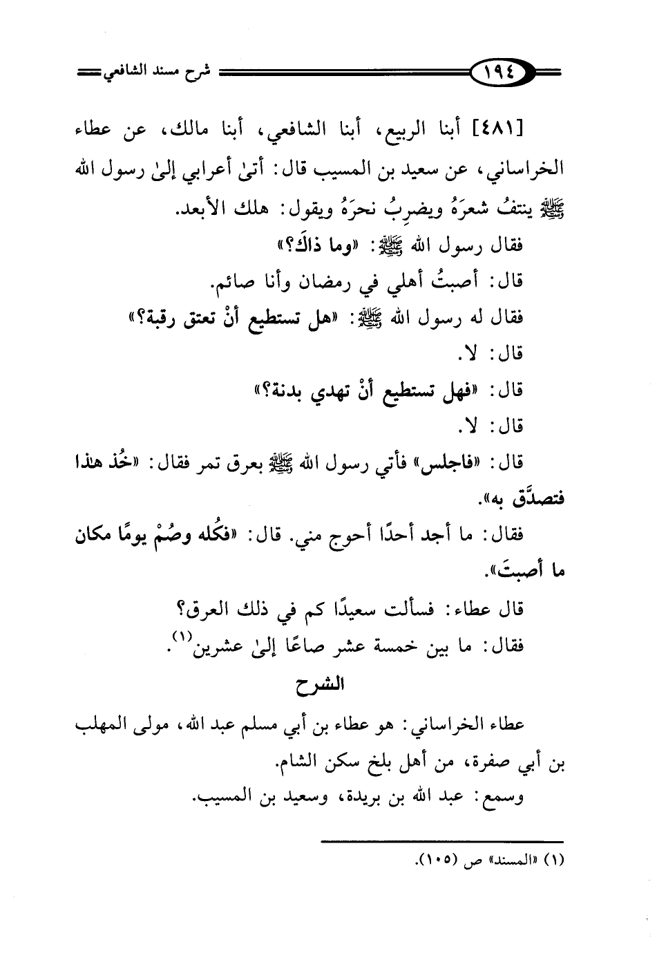 (¬1) "المسند" ص (105).