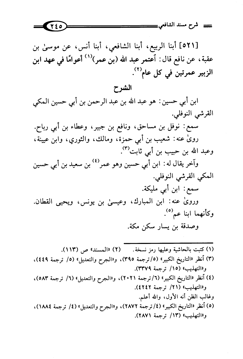 [521] أبنا الربيع، أبنا الشافعي، أبنا أنس، عن موسى بن عقبة، عن نافع قال: اعتمر عبد الله (بن عمر) (¬1) أعوامًا في عهد ابن الزبير عمرتين في كل عام (¬2).
