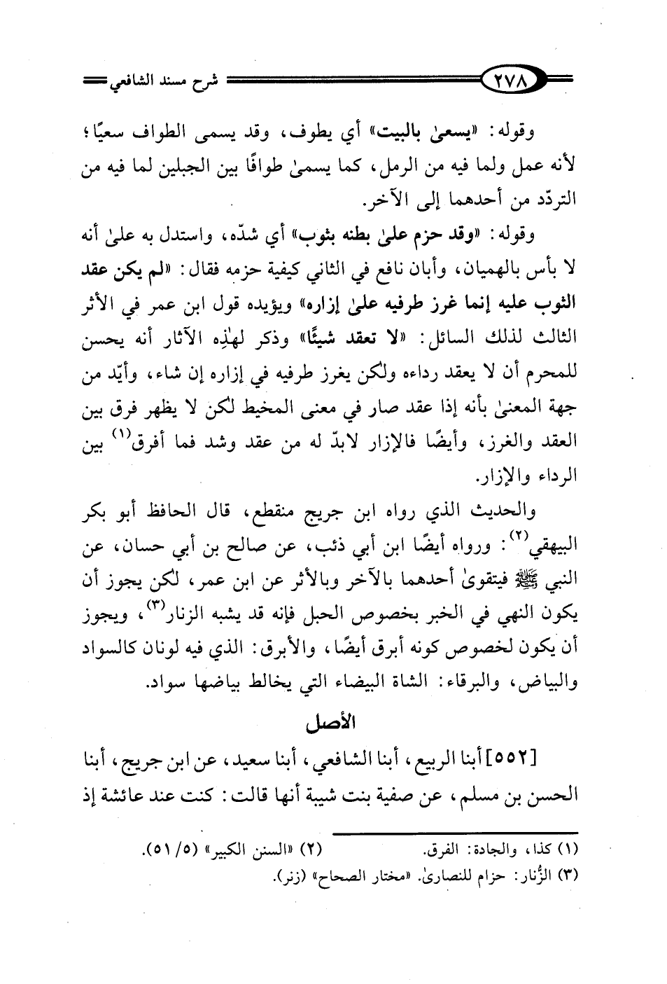 [552] أبنا الربيع، أبنا الشافعي، أبنا سعيد، عن ابن جريج، أبنا الحسن بن مسلم، عن صفية بنت شيبة أنها قالت: كنت عند عائشة إذ