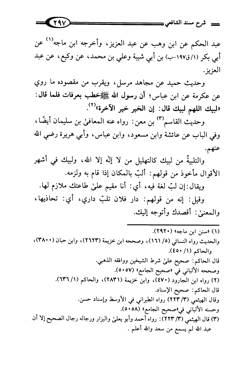 وحديث حميد عن مجاهد مرسل، ويقرب من مقصوده ما روي عن عكرمة عن ابن عباس؛ أن رسول الله - صلى الله عليه وسلم - خطب بعرفات فلما قال: "لبيك اللهم لبيك قال: إن الخير خير الآخرة" (¬2).