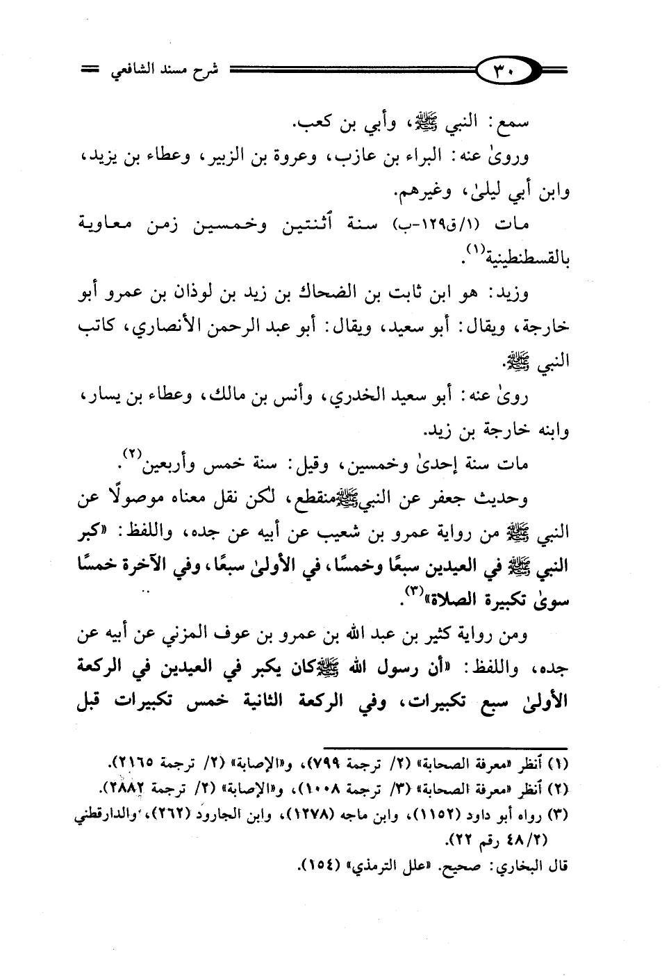 ومن رواية كثير بن عبد الله بن عمرو بن عوف المزني عن أبيه عن جده، واللفظ: "أن رسول الله - صلى الله عليه وسلم - كان يكبر في العيدين في الركعة الأولى سبع تكبيرات، وفي الركعة الثانية خمس تكبيرات قبل