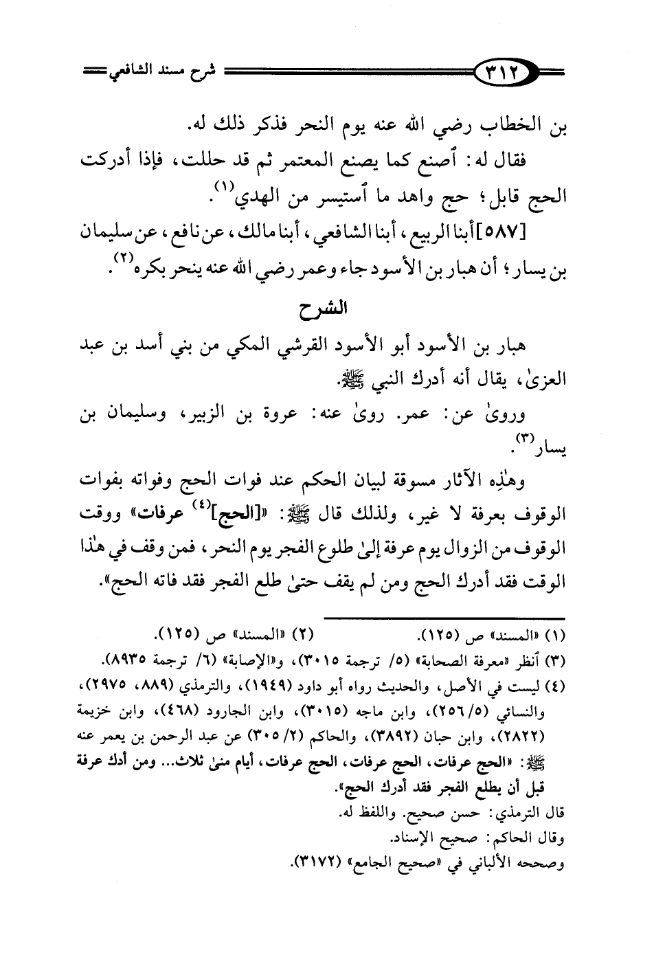 [587] أبنا الربيع، أبنا الشافعي، أبنا مالك، عن نافع، عن سليمان بن يسار؛ أن هبار بن الأسود جاء وعمر رضي الله عنه ينحر بكره (¬2).