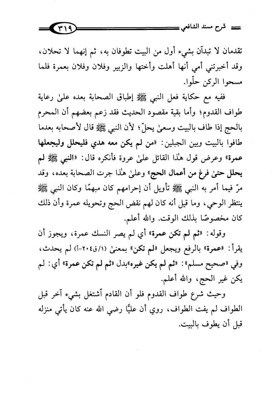تقدمان لا تبدآن بشيء أول من البيت تطوفان به، ثم إنهما لا تحلان، وقد أخبرتني أمي أنها أهلت وأختها والزبير وفلان وفلان بعمرة فلما مسحوا الركن حلّوا.