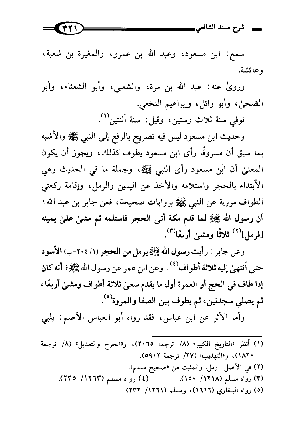 وحديث ابن مسعود ليس فيه تصريح بالرفع إلى النبي - صلى الله عليه وسلم - والأشبه بما سيق أن مسروقًا رأى ابن مسعود يطوف كذلك، ويجوز أن يكون المعنى أن ابن مسعود رأى النبي - صلى الله عليه وسلم -، وجملة ما في الحديث وهي الابتداء بالحجر واستلامه والأخذ عن اليمين والرمل، وإقامة ركعتي الطواف مروية عن النبي - صلى الله عليه وسلم - بروايات صحيحة، فعن جابر بن عبد الله؛ أن رسول الله - صلى الله عليه وسلم - لما قدم مكة أتى الحجر فاستلمه ثم مشى على يمينه [فرمل] (¬2) ثلاثًا ومشى أربعًا (¬3).
