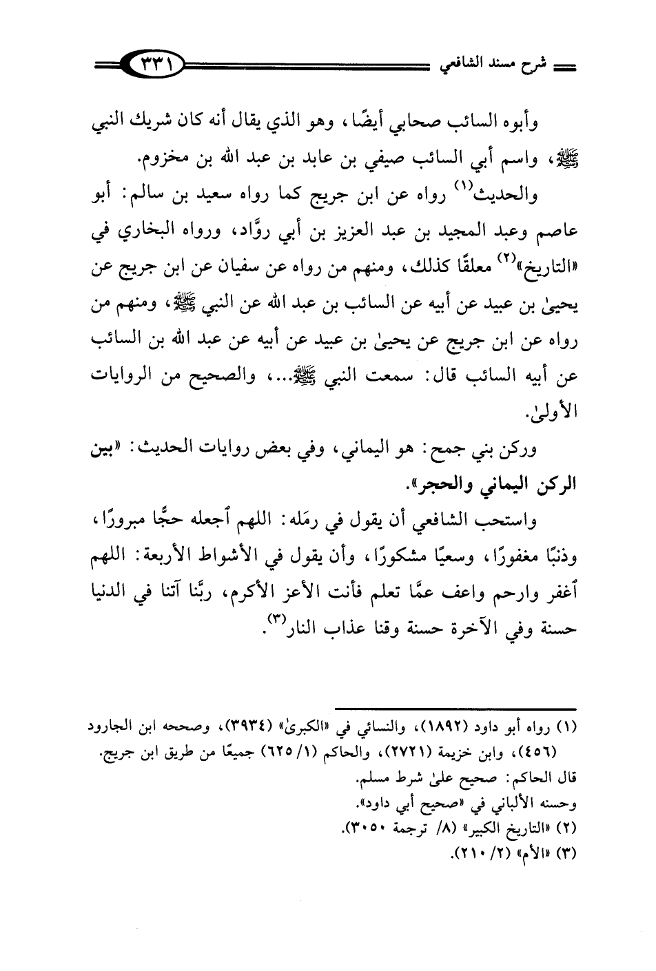 واستحب الشافعي أن يقول في رمَله: اللهم اجعله حجًّا مبرورًا، وذنبًا مغفورًا، وسعيًا مشكورًا، وأن يقول في الأشواط الأربعة: اللهم اغفر وارحم واعف عمَّا تعلم فأنت الأعز الأكرم، ربَّنا آتنا في الدنيا حسنة وفي الآخرة حسنة وقنا عذاب النار (¬3).