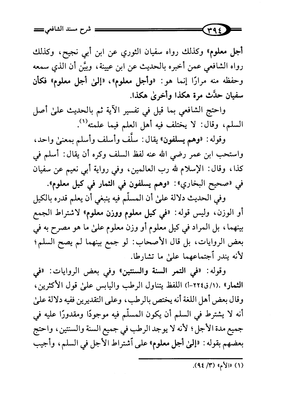 واحتج الشافعي بما قيل في تفسير الآية ثم بالحديث على أصل السلم، وقال: لا يختلف فيه أهل العلم فيما علمته (¬1).