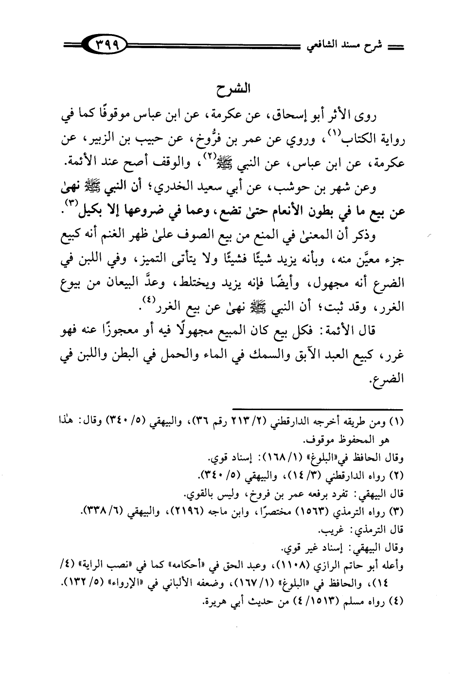 وعن شهر بن حوشب، عن أبي سعيد الخدري؛ أن النبي - صلى الله عليه وسلم - نهى عن بيع ما في بطون الأنعام حتى تضع، وعما في ضروعها إلا بكيل (¬3).