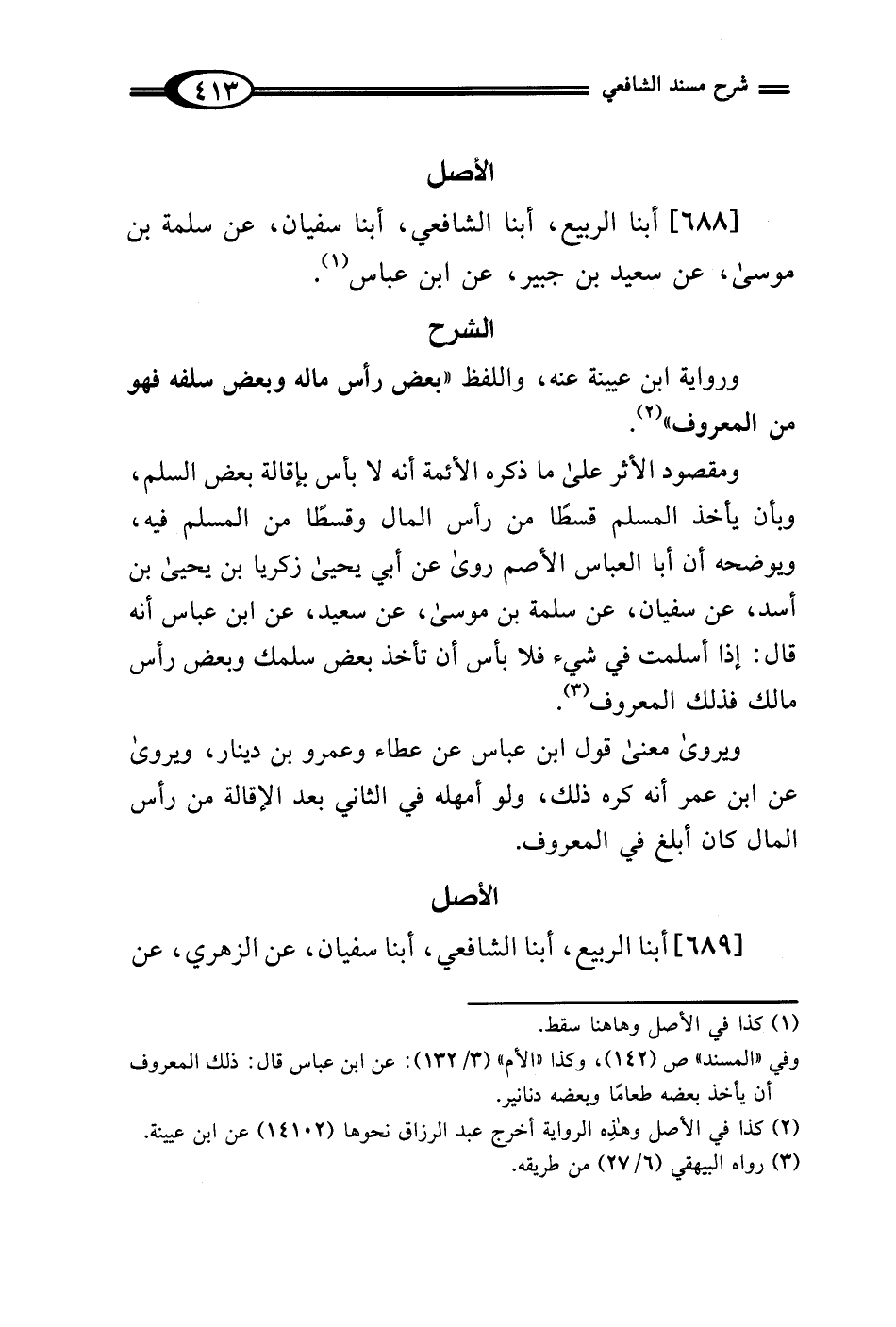 ومقصود الأثر على ما ذكره الأئمة أنه لا بأس بإقالة بعض السلم، وبأن يأخذ المسلم قسطًا من رأس المال وقسطًا من المسلم فيه، ويوضحه أن أبا العباس الأصم روى عن أبي يحيى زكريا بن يحيى بن أسد، عن سفيان، عن سلمة بن موسى، عن سعيد، عن ابن عباس أنه قال: إذا أسلمت في شيء فلا بأس أن تأخذ بعض سلمك وبعض رأس مالك فذلك المعروف (¬3).