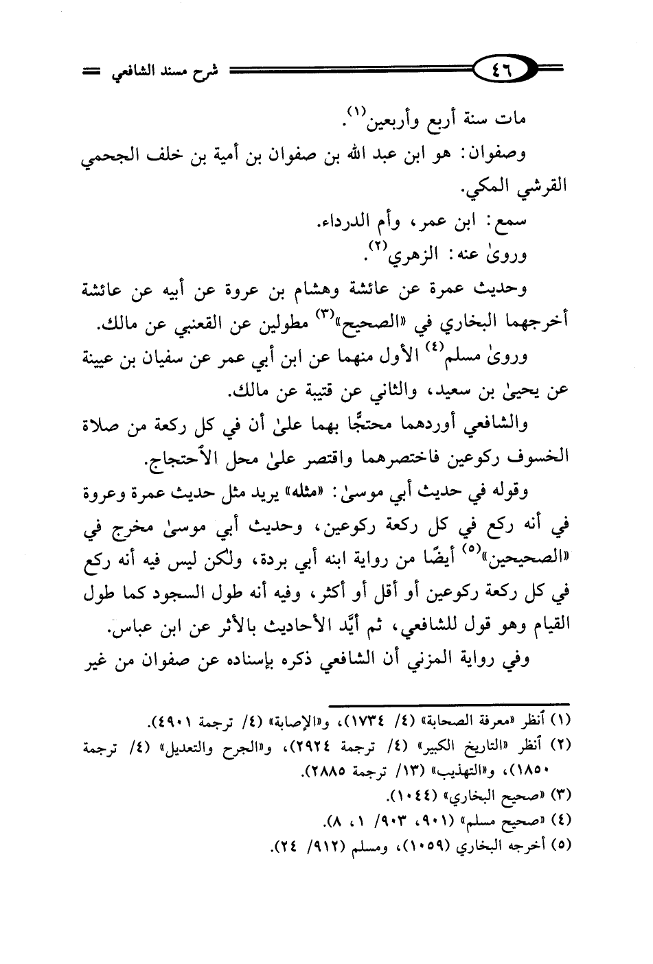 وفي رواية المزني أن الشافعي ذكره بإسناده عن صفوان من غير