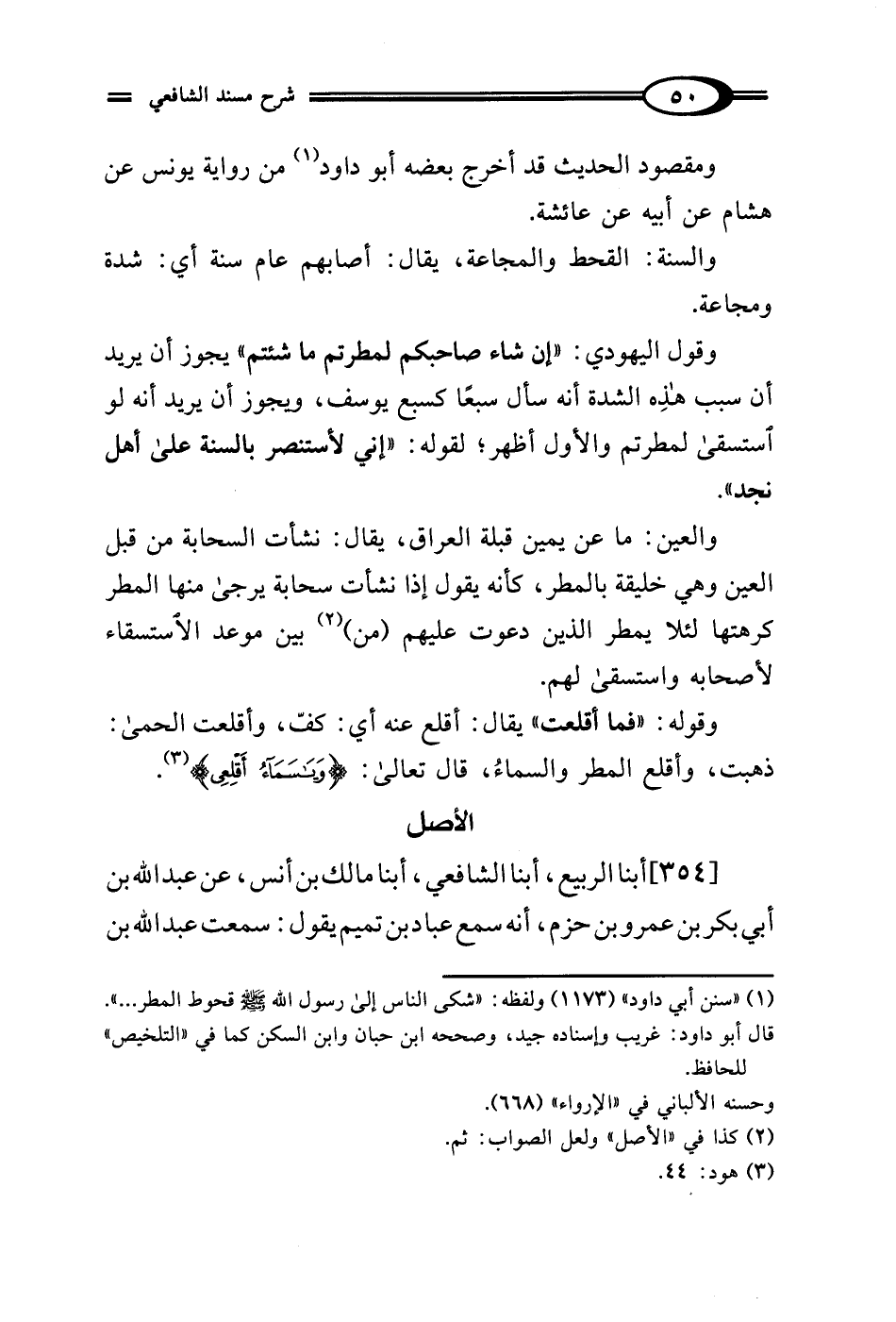 [354] أبنا الربيع، أبنا الشافعي، أبنا مالك بن أنس، عن عبد الله بن أبي بكر بن عمرو بن حزم، أنه سمع عباد بن تميم يقول: سمعت عبد الله بن