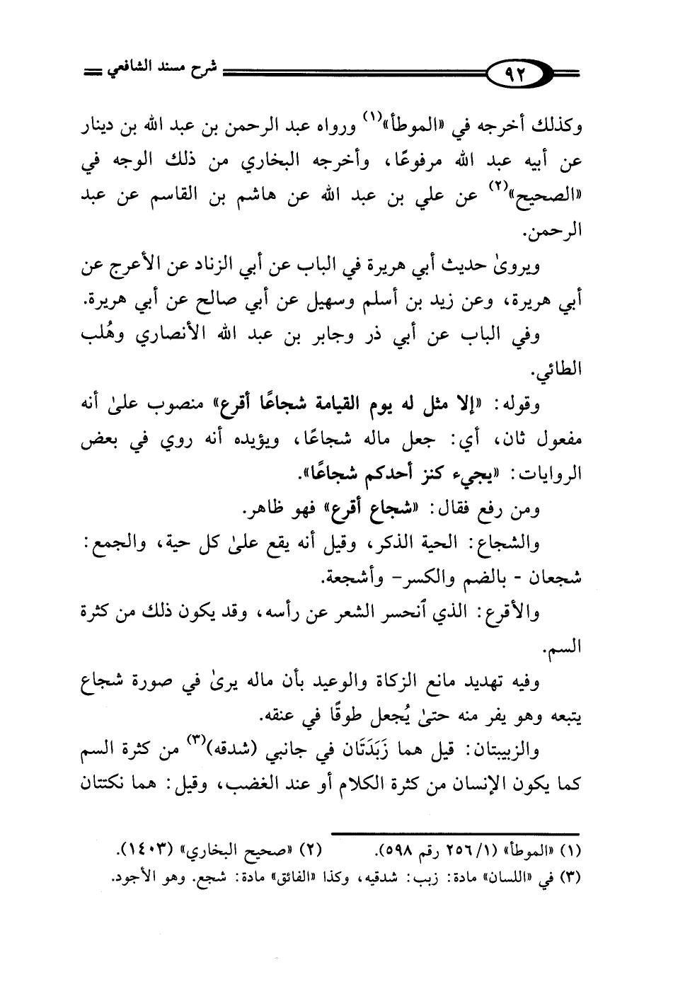 والزبيبتان: قيل هما زَبَدَتَان في جانبي (شدقه) (¬3) من كثرة السم كما يكون الإنسان من كثرة الكلام أو عند الغضب، وقيل: هما نكتتان