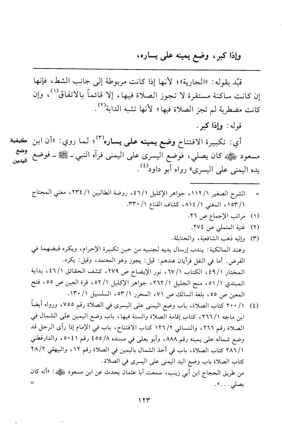 المختار ١/ ٤٩، الكتاب ١/ ٦٧، نور الإيضاح ص ٢٧٩، كشف الحقائق ١/ ٤٦، بداية المبتدي ١/ ٥١، منح الجليل ١/ ٢٦٢، جواهر الإكليل ١/ ٥٢، قرة العين ص ٥٥، فتح المعين ص ٥٥، بلغة السالك ص ٧١، المحرر ١/ ٥٣، السلسبيل ١/ ١٣٠.