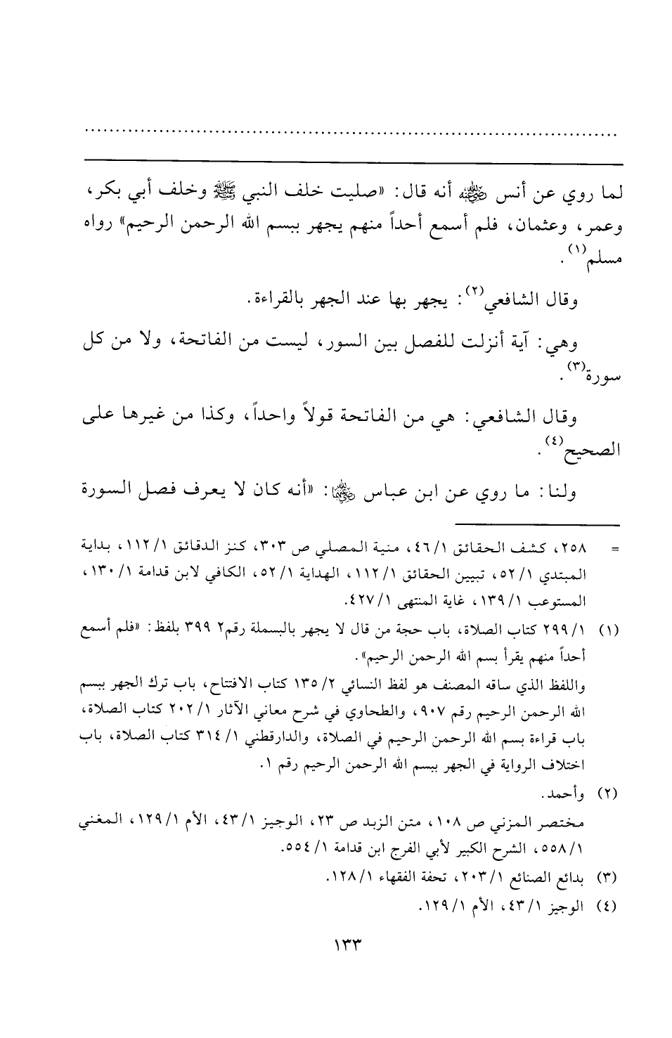 = ٢٥٨، كشف الحقائق ١/ ٤٦، منية المصلي ص ٣٠٣، كنز الدقائق ١/ ١١٢، بداية المبتدي ١/ ٥٢، تبيين الحقائق ١/ ١١٢، الهداية ١/ ٥٢، الكافي لابن قدامة ١/ ١٣٠، المستوعب ١/ ١٣٩، غاية المنتهى ١/ ٤٢٧.
