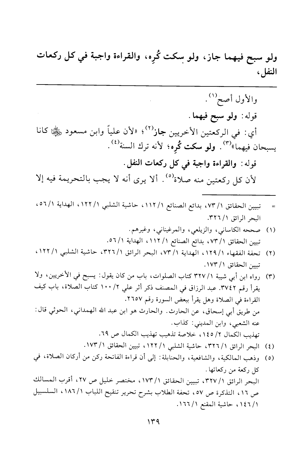 (¬٤) البحر الرائق ١/ ٣٢٦، حاشية الشلبي ١/ ١٢٢، تبيين الحقائق ١/ ١٧٣.