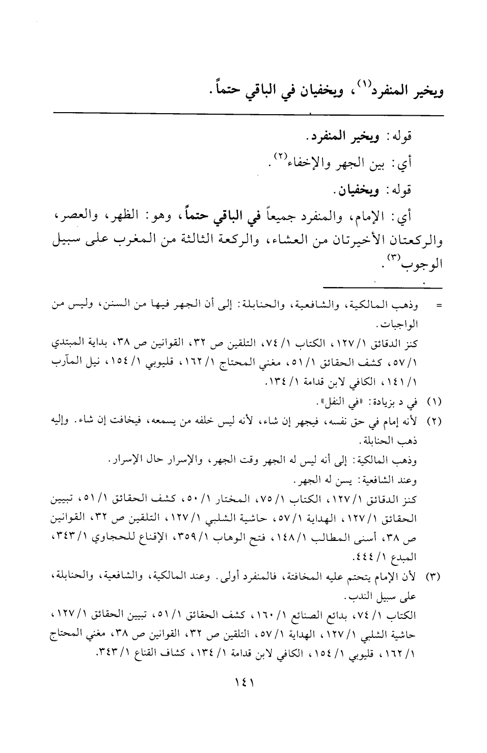 كنز الدقائق ١/ ١٢٧، الكتاب ١/ ٧٤، التلقين ص ٣٢، القوانين ص ٣٨، بداية المبتدي ١/ ٥٧، كشف الحقائق ١/ ٥١، مغني المحتاج ١/ ١٦٢، قليوبي ١/ ١٥٤، نيل المآرب ١/ ١٤١، الكافي لابن قدامة ١/ ١٣٤.