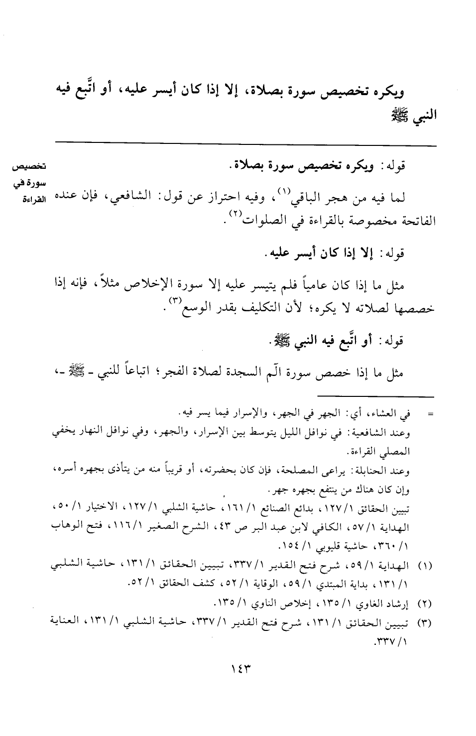 (¬٣) تبيين الحقائق ١/ ١٣١، شرح فتح القدير ١/ ٣٣٧، حاشية الشلبي ١/ ١٣١، العناية ١/ ٣٣٧.