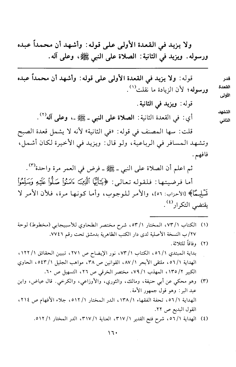 أي: في القعدة الثانية: الصلاة على النبي -صلى الله عليه وسلم-، وعلى آله (¬٢).