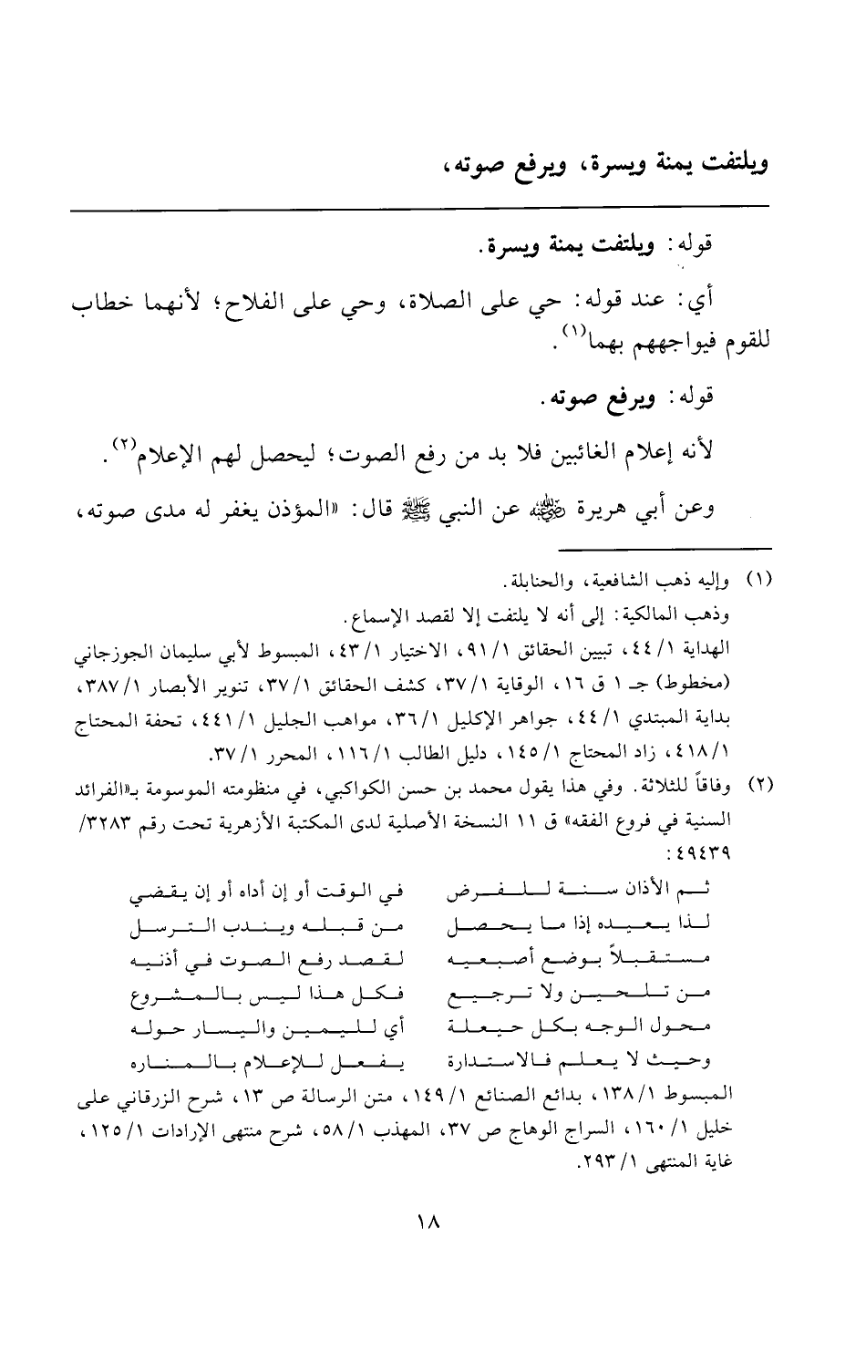 (¬٢) وفاقًا للثلاثة. وفي هذا يقول محمد بن حسن الكواكبي، في منظومته الموسومة بـ "الفرائد السنية في فروع الفقه" ق ١١ النسخة الأصلية لدى المكتبة الأزهرية تحت رقم ٣٢٨٣/ ٤٩٣٩: