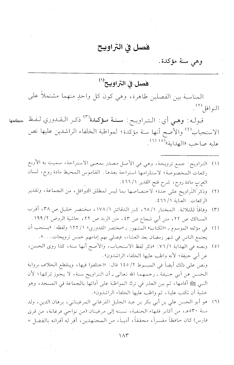 (¬٦) هو أبو الحسن علي بن أبي بكر بن عبد الجليل الفرغاني المرغيناني، برهان الدين، ولد سنة ٥٣٠ هـ، من أكابر فقهاء الحنفية، نسبته إلى مرغينان (من نواحي فرغانة، من قرى فارس) كان حافظًا مفسرًا، محققًا، أديبًا، من المجتهدين، أقر له أقرانه بالفضل =