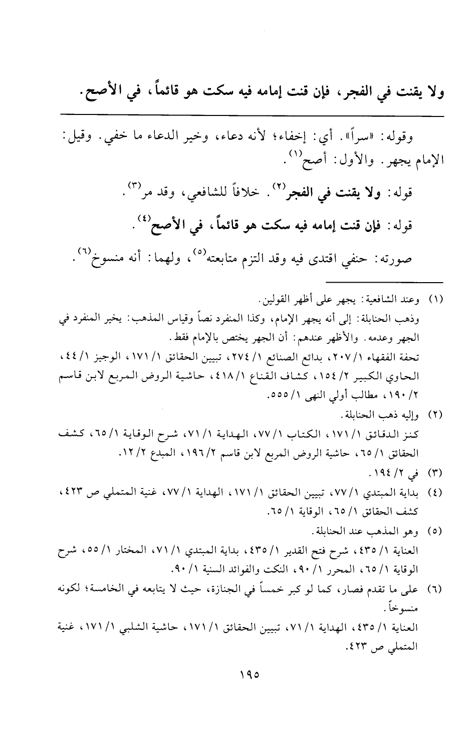 العناية ١/ ٤٣٥، الهداية ١/ ٧١، تبيين الحقائق ١/ ١٧١، حاشية الشلبي ١/ ١٧١، غنية المتملي ص ٤٢٣.