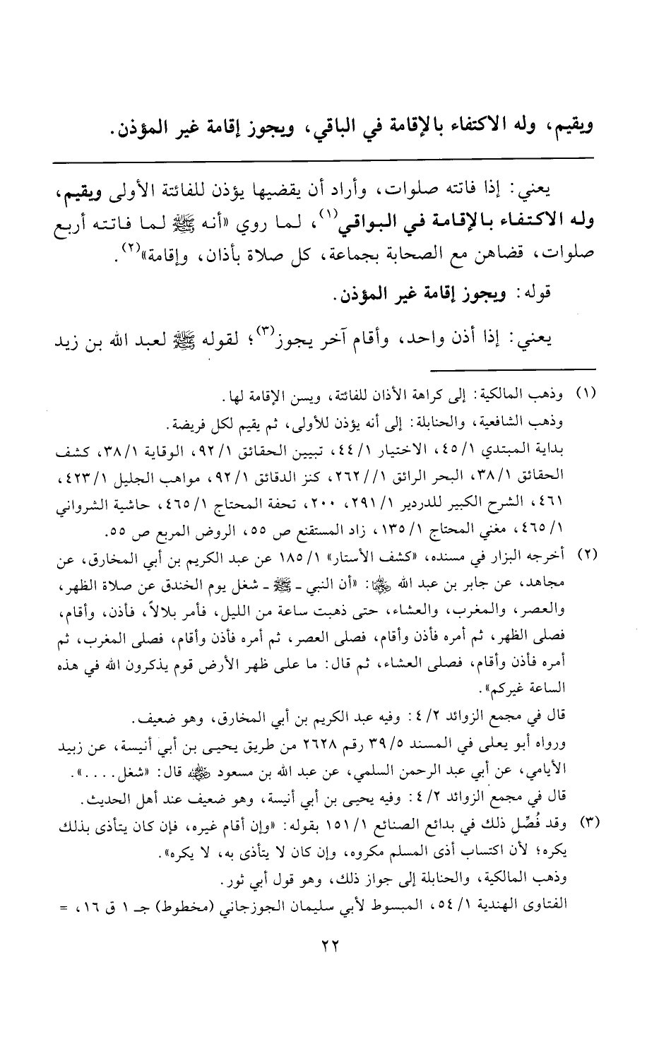 (¬٣) وقد فُصِّل ذلك في بدائع الصنائع ١/ ١٥١ بقوله: "وإن أقام غيره، فإن كان يتأذى بذلك يكره؛ لأن اكتساب أذى المسلم مكروه، وإن كان لا يتأذى به، لا يكره".