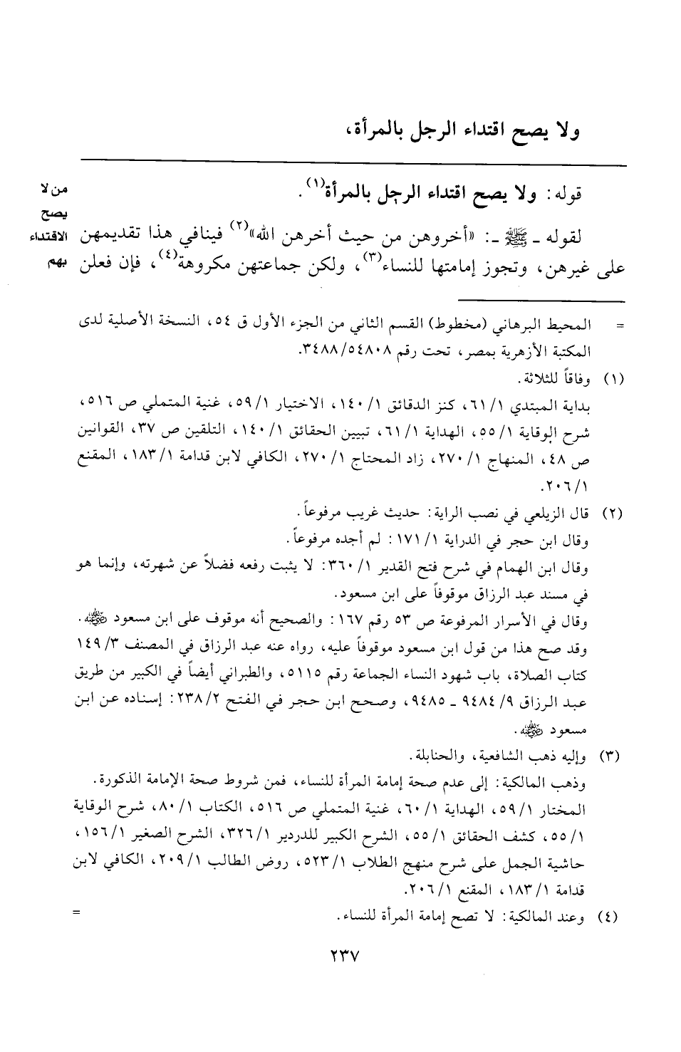 (¬٤) وعند المالكية: لا تصح إمامة المرأة للنساء. =