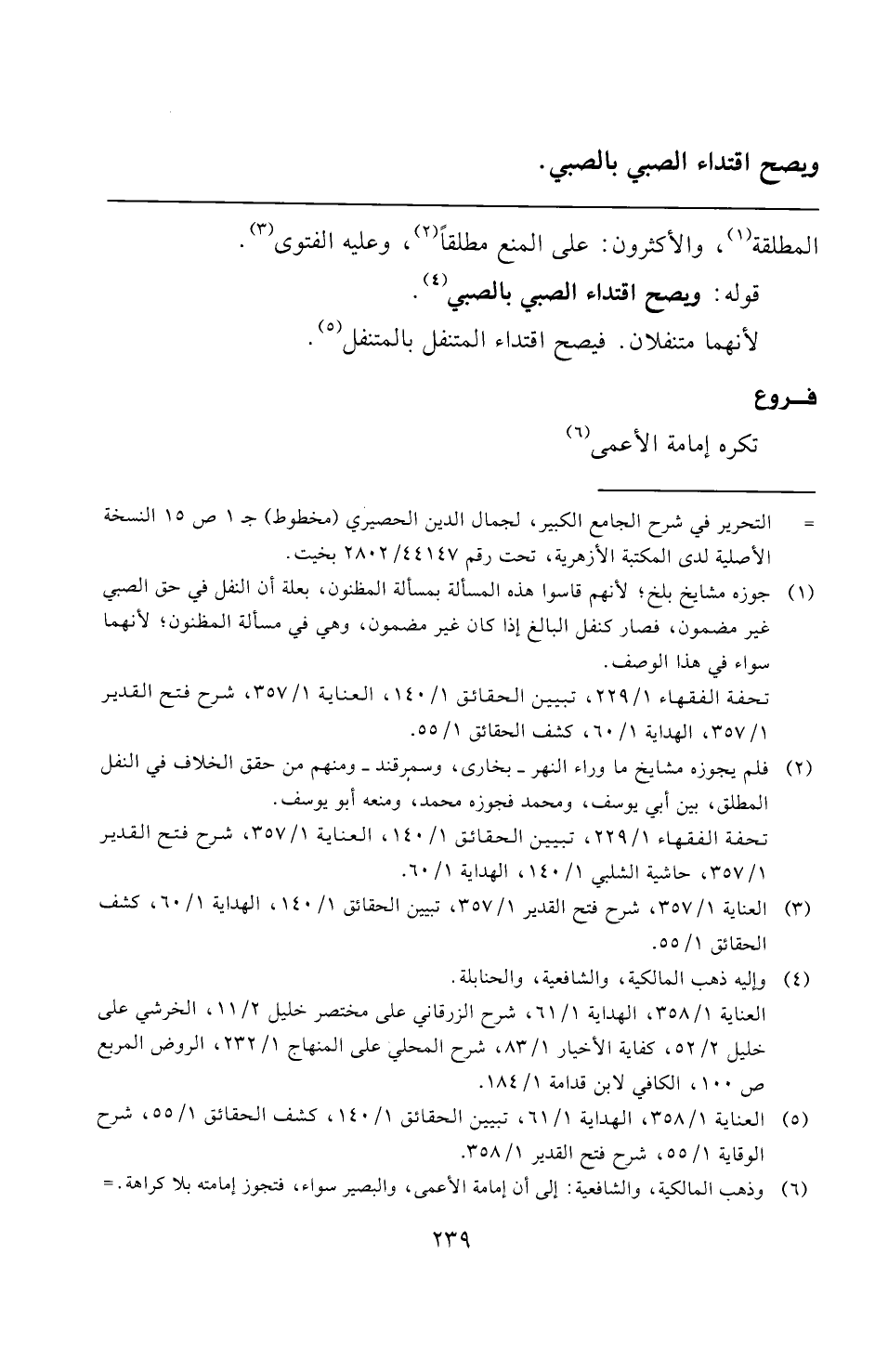 (¬٥) العناية ١/ ٣٥٨، الهداية ١/ ٦١، تبيين الحقائق ١/ ١٤٠، كشف الحقائق ١/ ٥٥، شرح الوقاية ١/ ٥٥، شرح فتح القدير ١/ ٣٥٨.