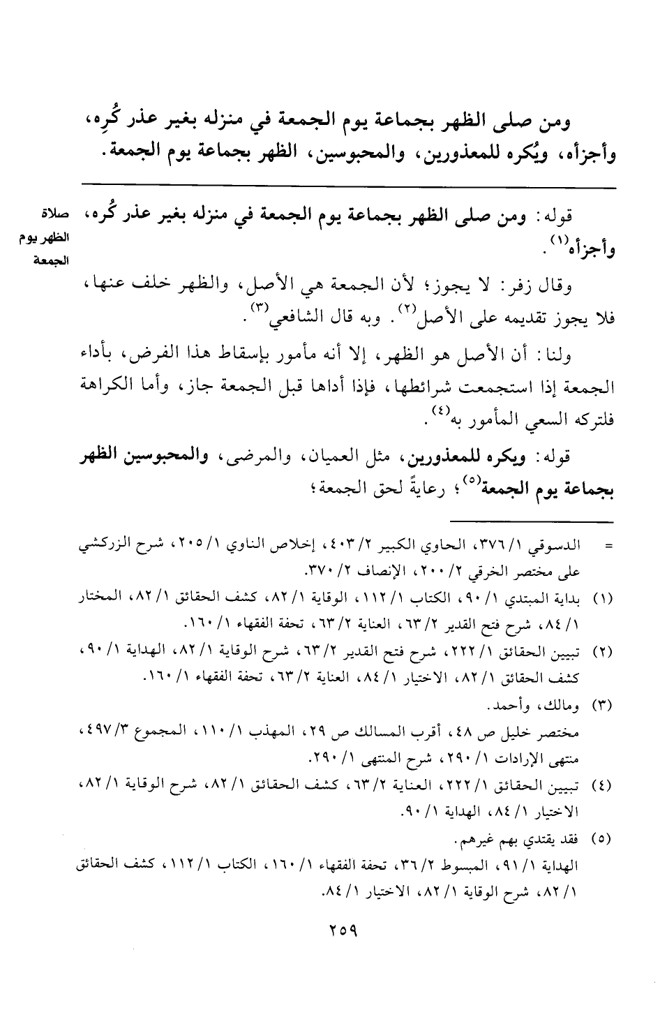 (¬٤) تبيين الحقائق ١/ ٢٢٢، العناية ٢/ ٦٣، كشف الحقائق ١/ ٨٢، شرح الوقاية ١/ ٨٢، الاختيار ١/ ٨٤، الهداية ١/ ٩٠.