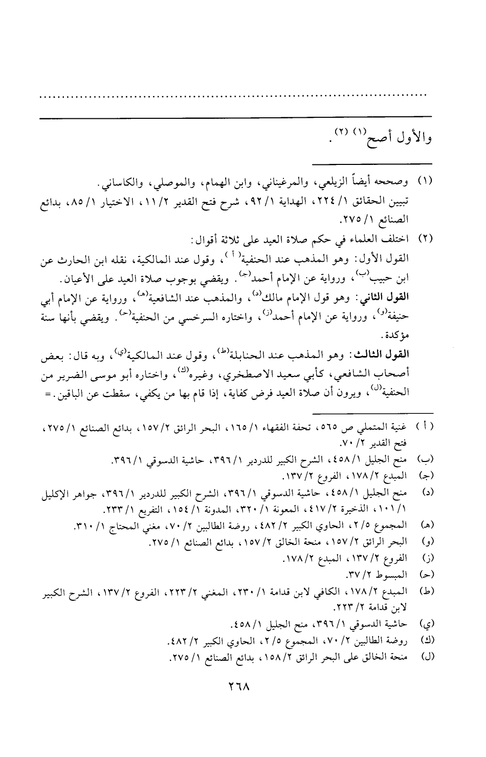 (¬٢) اختلف العلماء في حكم صلاة العيد على ثلاثة أقوال: