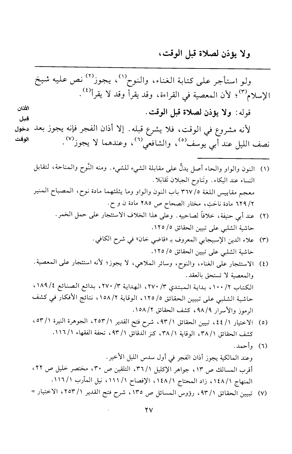 (¬٥) الاختيار ١/ ٤٤، تبيين الحقائق ١/ ٩٣، شرح فتح القدير ١/ ٢٥٣، الجوهرة النيرة ١/ ٥٣، كشف الحقائق ١/ ٣٨، الوقاية ١/ ٣٨، كنز الدقائق ١/ ٩٣، تحفة الفقهاء ١/ ١١٦.