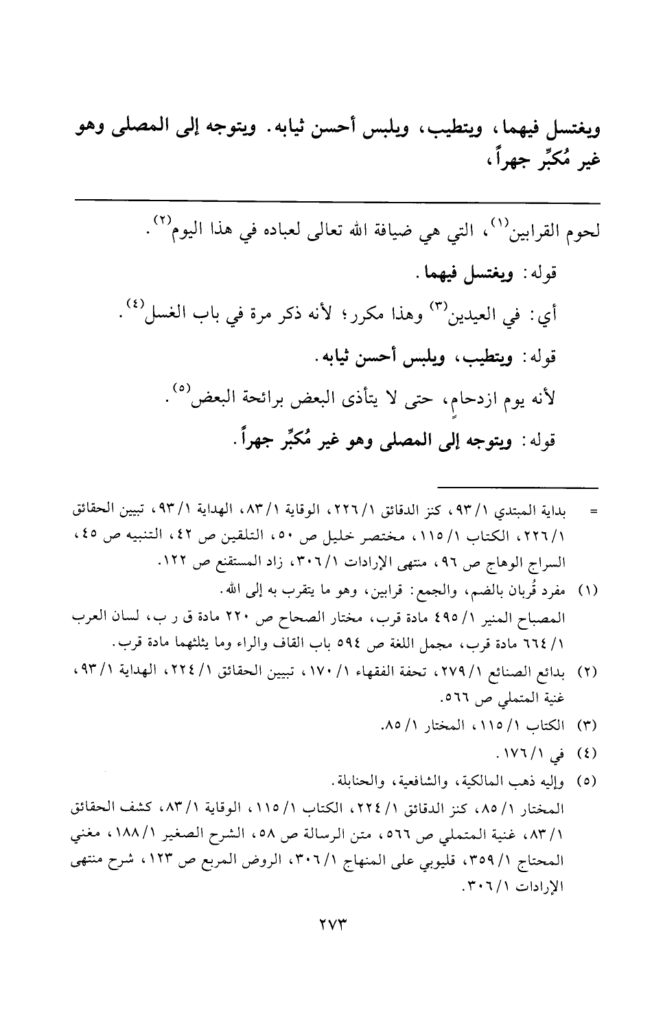 ويغتسل فيهما، ويتطيب، ويلبس أحسن ثيابه. ويتوجه إلى المصلى وهو غير مُكبِّر جهرًا،