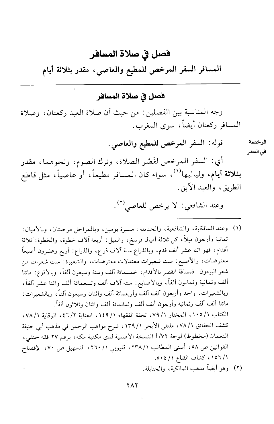 المسافر السفر المرخص للمطيع والعاصي، مقدر بثلاثة أيام