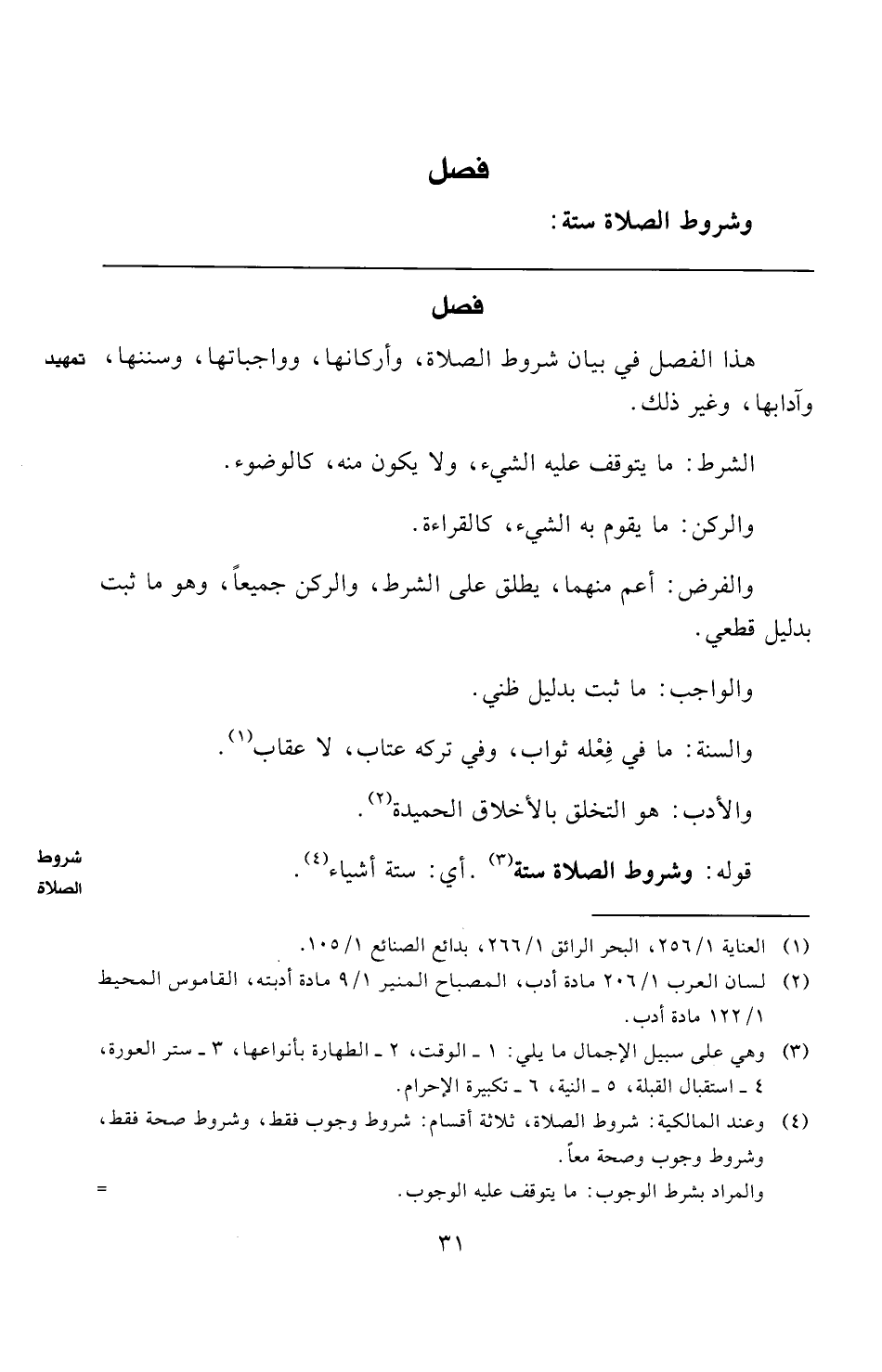قوله: وشروط الصلاة ستة (¬٣). أي: ستة أشياء (¬٤).
