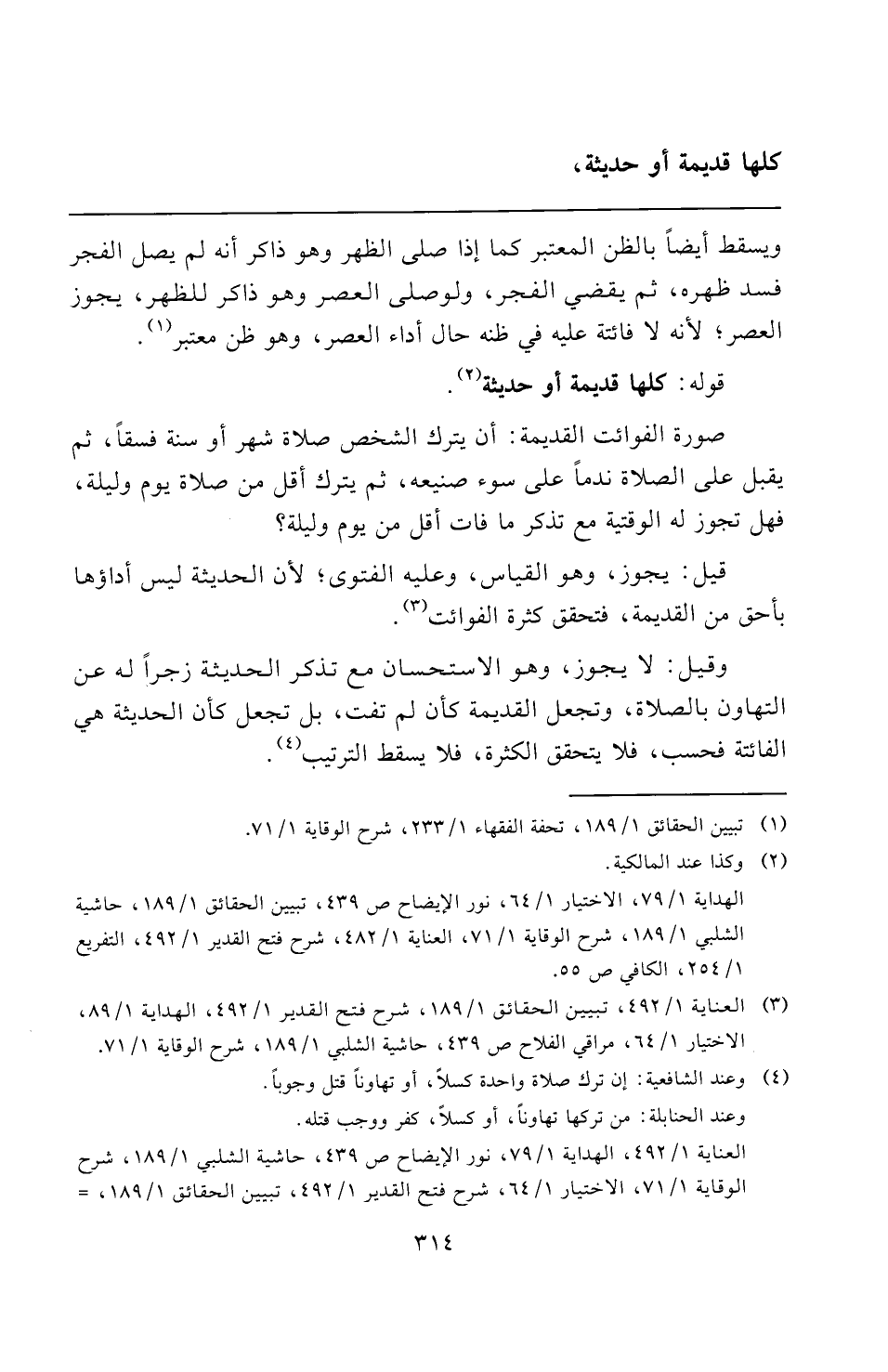 (¬٣) العناية ١/ ٤٩٢، تبيين الحقائق ١/ ١٨٩، شرح فتح القدير ١/ ٤٩٢، الهداية ١/ ٨٩، الاختيار ١/ ٦٤، مراقي الفلاح ص ٤٣٩، حاشية الشلبي ١/ ١٨٩، شرح الوقاية ١/ ٧١.