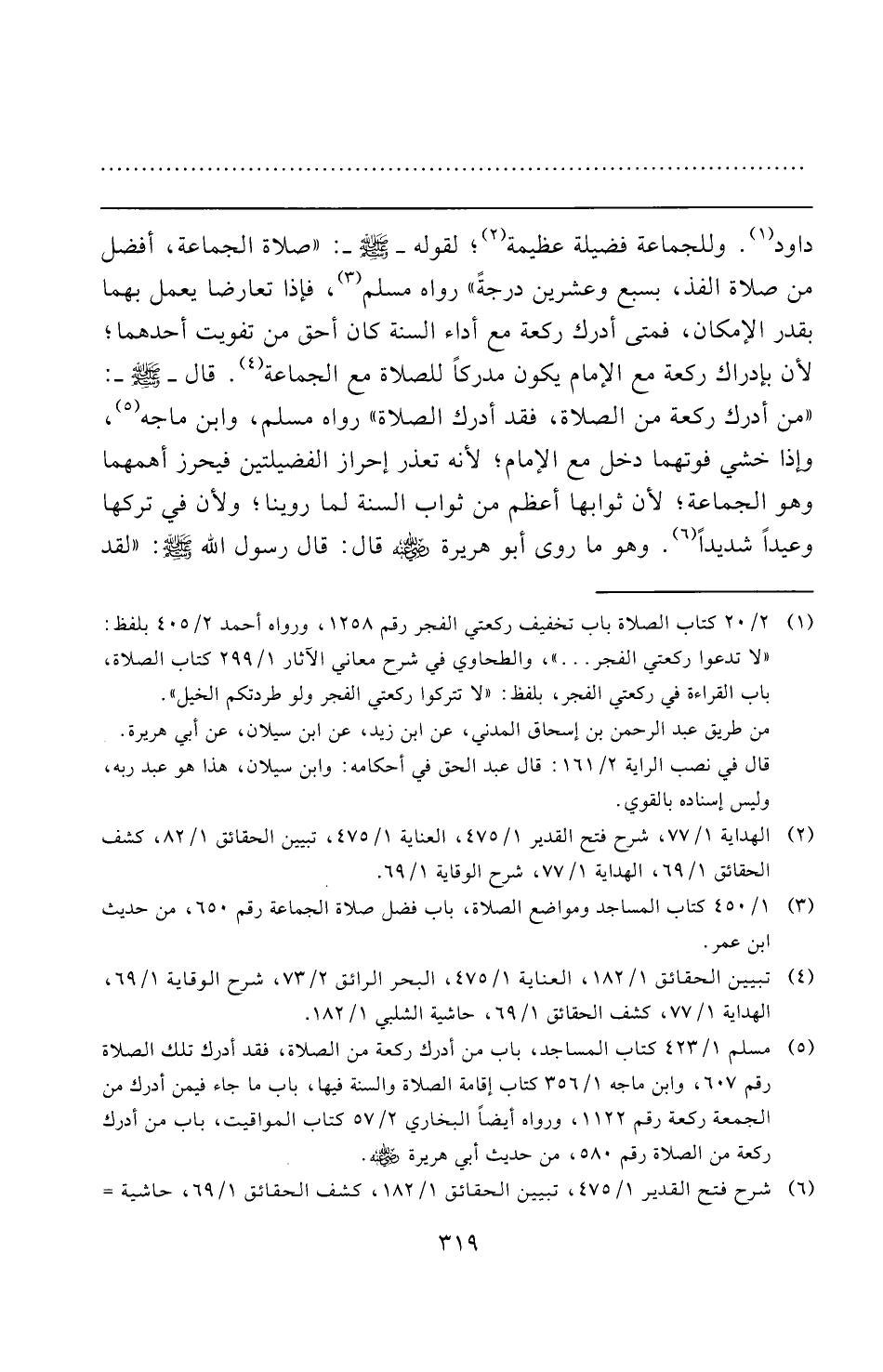 (¬٢) الهداية ١/ ٧٧، شرح فتح القدير ١/ ٤٧٥، العناية ١/ ٤٧٥، تبيين الحقائق ١/ ٨٢، كشف الحقائق ١/ ٦٩، الهداية ١/ ٧٧، شرح الوقاية ١/ ٦٩.