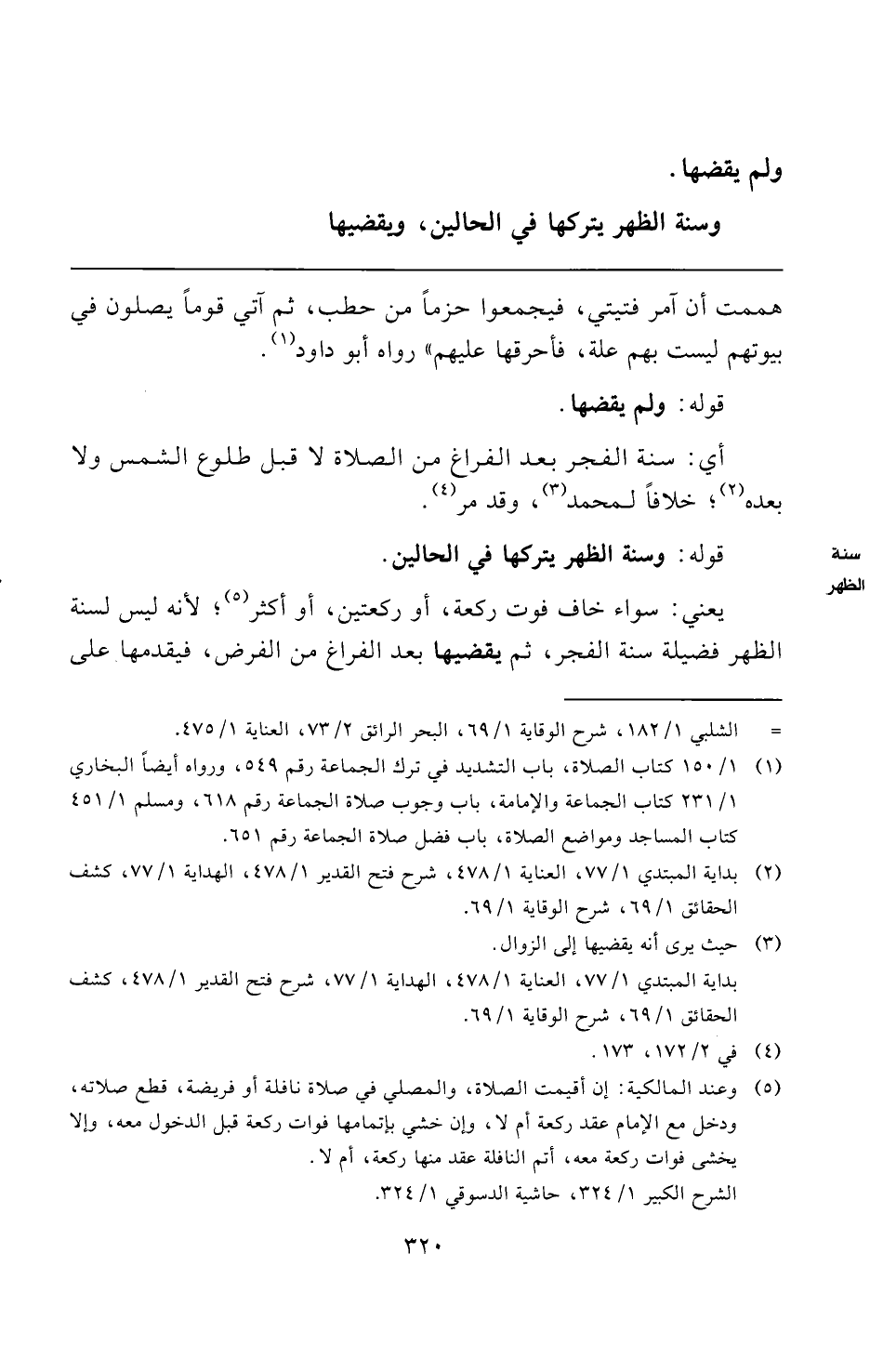 = الشلبي ١/ ١٨٢، شرح الوقاية ١/ ٦٩، البحر الرائق ٢/ ٧٣، العناية ١/ ٤٧٥.