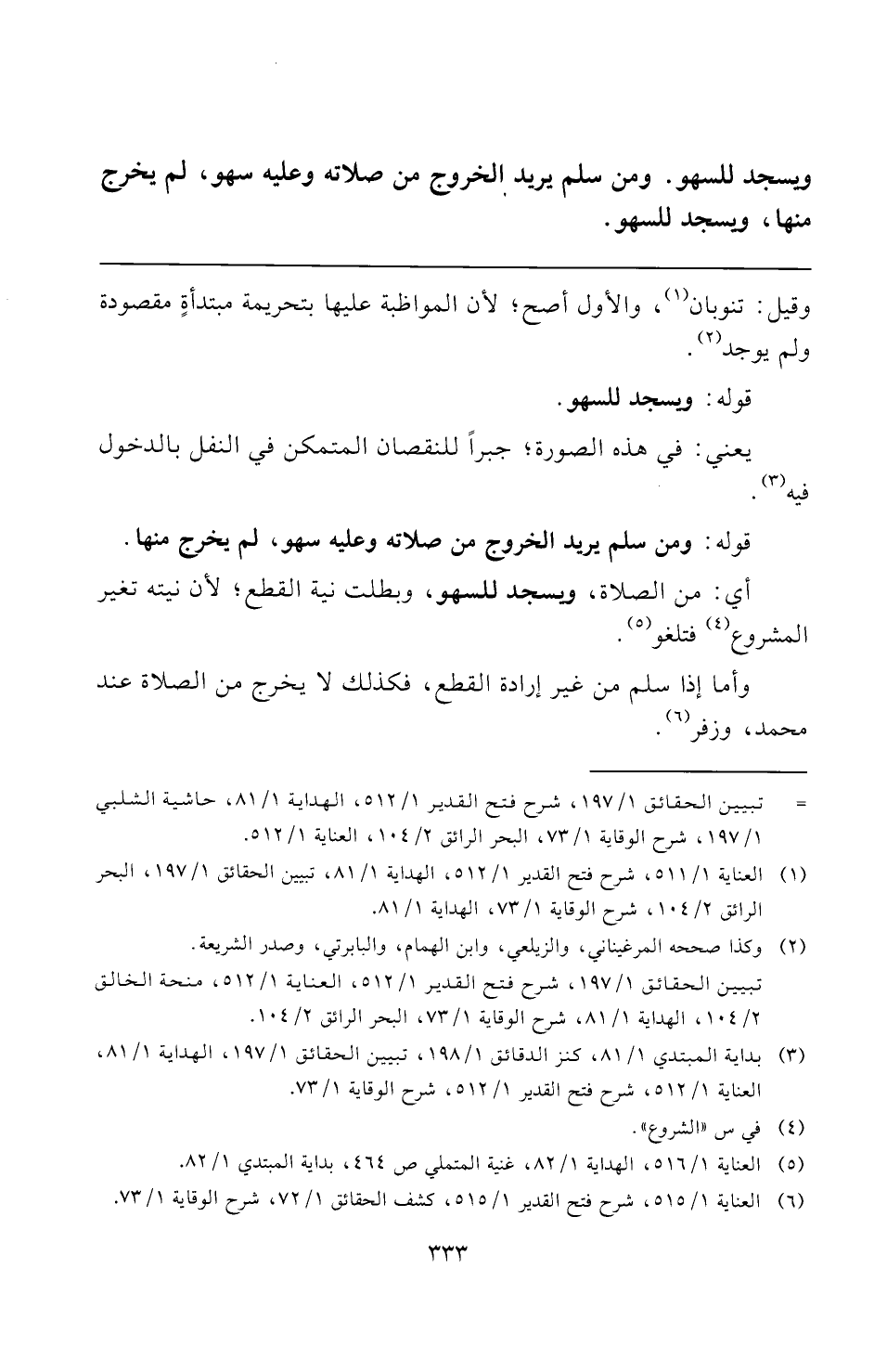 (¬٦) العناية ١/ ٥١٥، شرح فتح القدير ١/ ٥١٥، كشف الحقائق ١/ ٧٢، شرح الوقاية ١/ ٧٣.