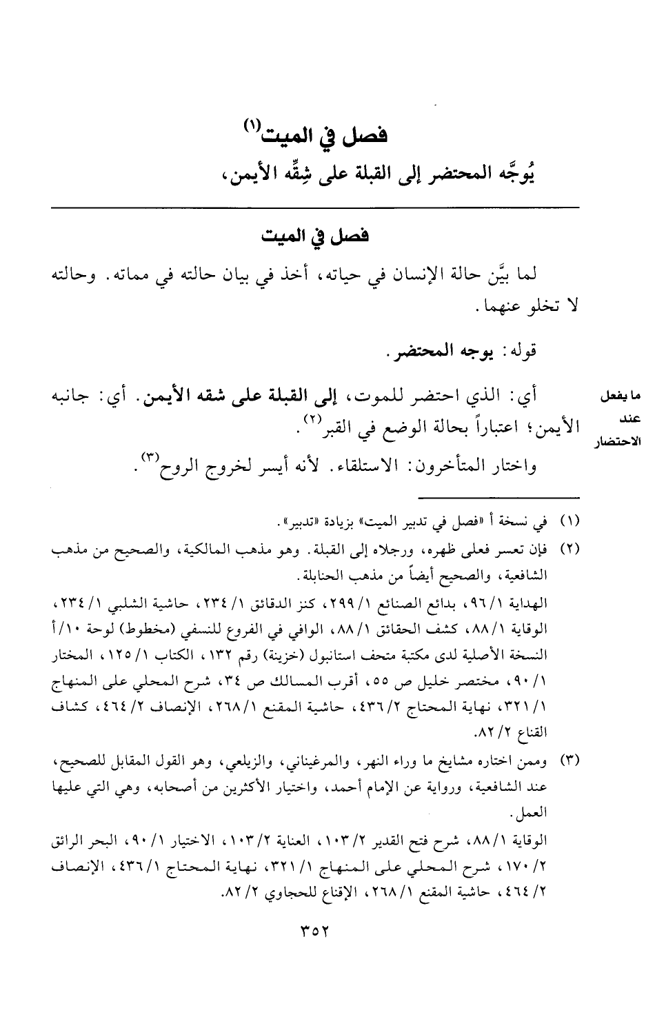 يُوجَّه المحتضر إلى القبلة على شِقِّه الأيمن،