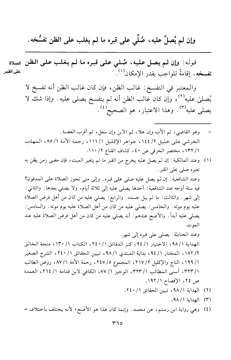 والمعتبر في التفسخ: غالب الظن، فإن كان غالب الظن أنه تفسخ لا يُصلى عليه (¬٢)، وإن كان غالب الظن أنه لم يتفسخ يصلى عليه. وإذا شك لا يصلى عليه (¬٣). وهذا الاعتبار، هو الصحيح (¬٤).