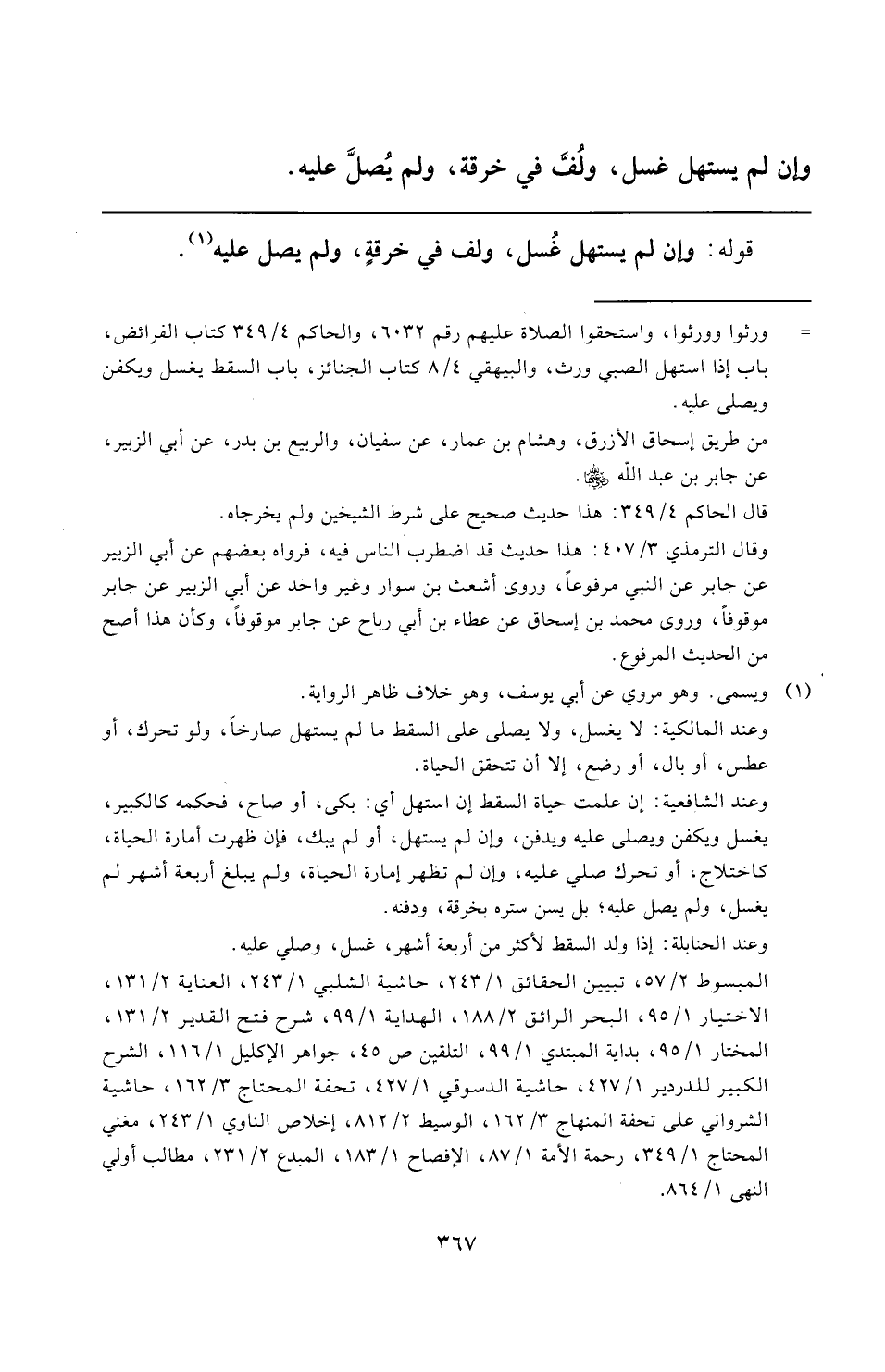 = ورثوا وورثوا، واستحقوا الصلاة عليهم رقم ٦٠٣٢، والحاكم ٤/ ٣٤٩ كتاب الفرائض، باب إذا استهل الصبي ورث، والبيهقي ٤/ ٨ كتاب الجنائز، باب السقط يغسل ويكفن ويصلى عليه.