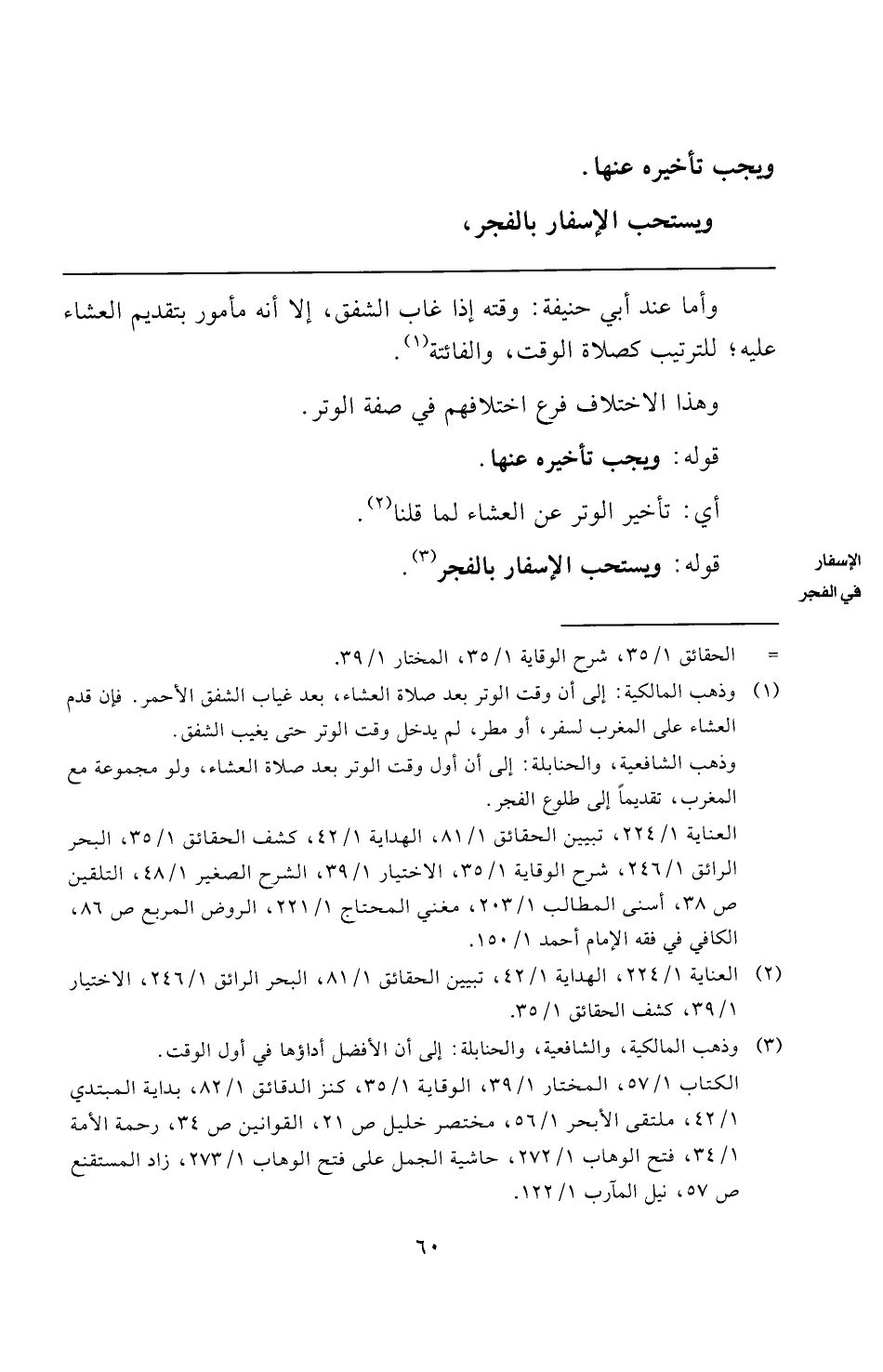 (¬٢) العناية ١/ ٢٢٤، الهداية ١/ ٤٢، تبيين الحقائق ١/ ٨١، البحر الرائق ١/ ٢٤٦، الاختيار ١/ ٣٩، كشف الحقائق ١/ ٣٥.